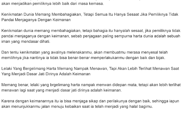 Menikahlah Sama Pria yang Ikhlas Membimbingmu ke Jannah-Nya, Bukan yang Mengiming-imingimu Dengan Harta